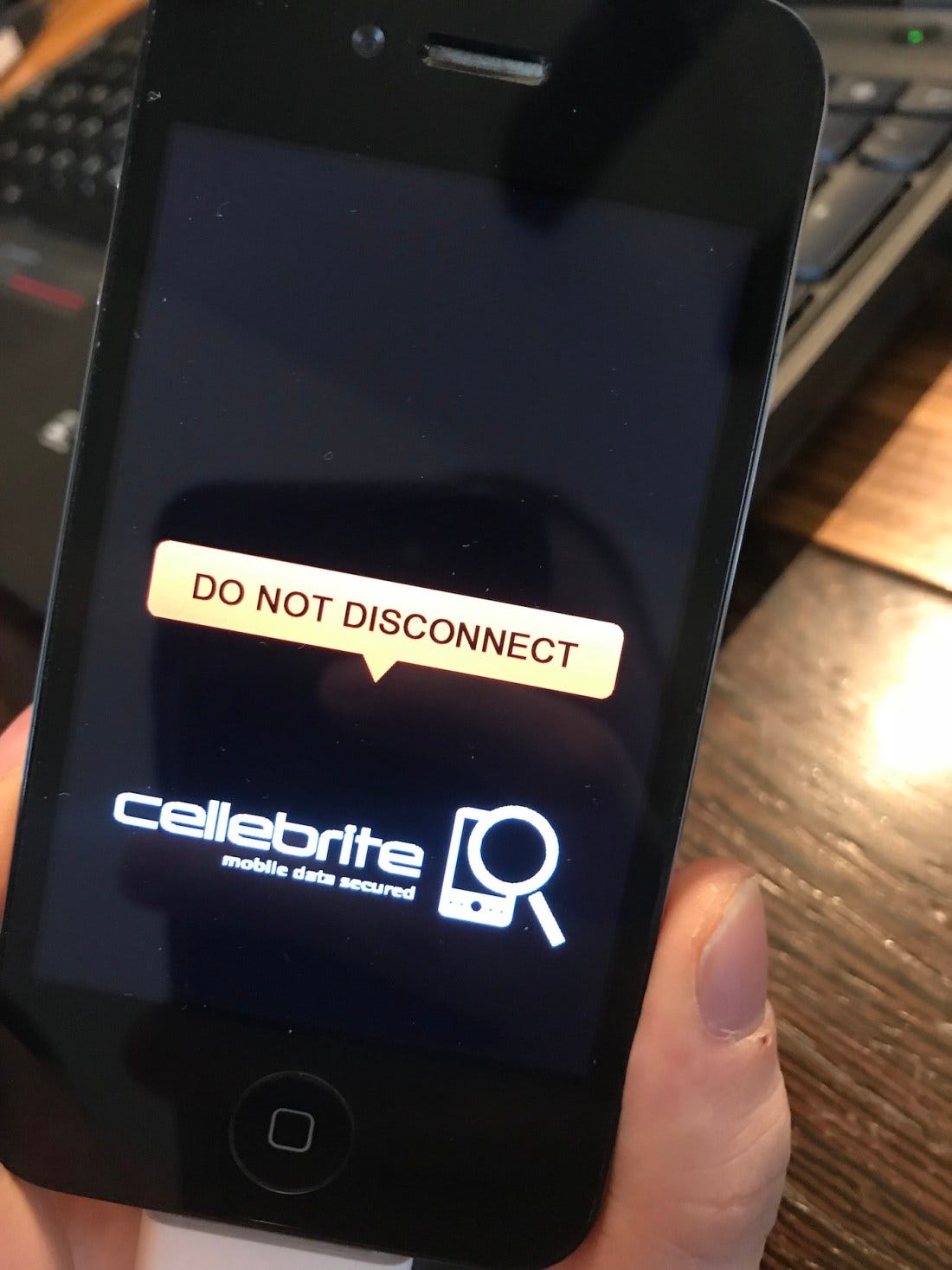 物理提取, 我们做了一个 iPhone 4 的实验, 在iOS引导过程中使用的一个bug允许无符号代码执行 (其技术用于越狱旧的 iDevices) Cellebrite 然后运行了自己的操作系统,而不是iOS,以从手机中提取数据.