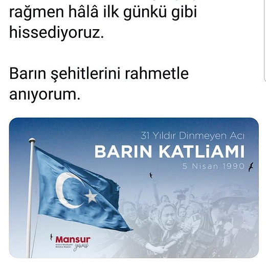 “中国威胁并针对为维吾尔族土耳其人辩护的 Meral Akşener 和 Mansur Yavaş。应向中国发出外交照会,并宣布中国大使馆工作人员为不受欢迎的人。”