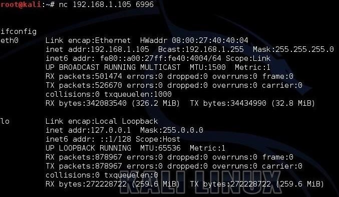现在,Elliott 可以通过在他的 Kali 系统上使用 Netcat 连接回 Raspberry Pi,输入以下内容: