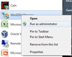 现在,您已经安装了 Disk Imager,右键单击它并以 “管理员” 身份运行它。