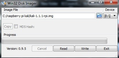 kali >dd if =Kali-RPI.img of = /dev/sdc bs=512k