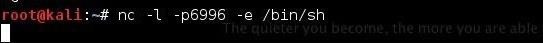 连接后,可以通过键入以下内容来启动 Netcat 侦听器(Kali 内置了 Netcat):