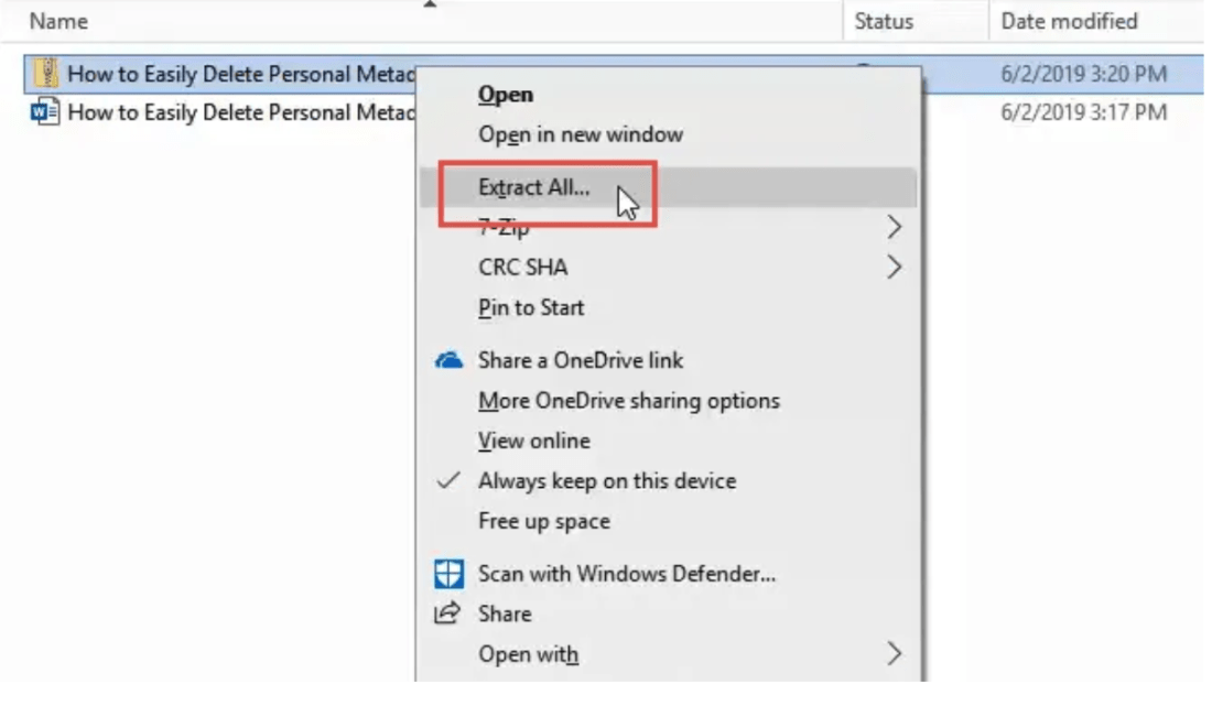 将文件的扩展名从 .docx 更改为 .zip。是的,每个以x结尾的 Office 文件类型都是包含XML的压缩文件。您会收到有关此操作的警告。单击是。