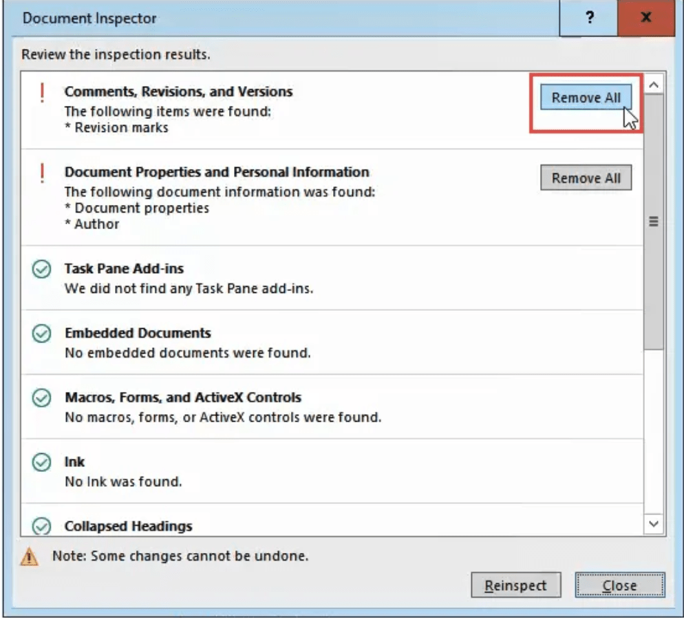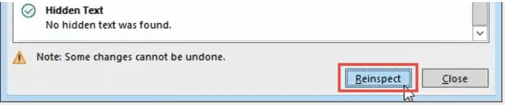 单击 Inspect Document。将打开 “文档检查器” 窗口。