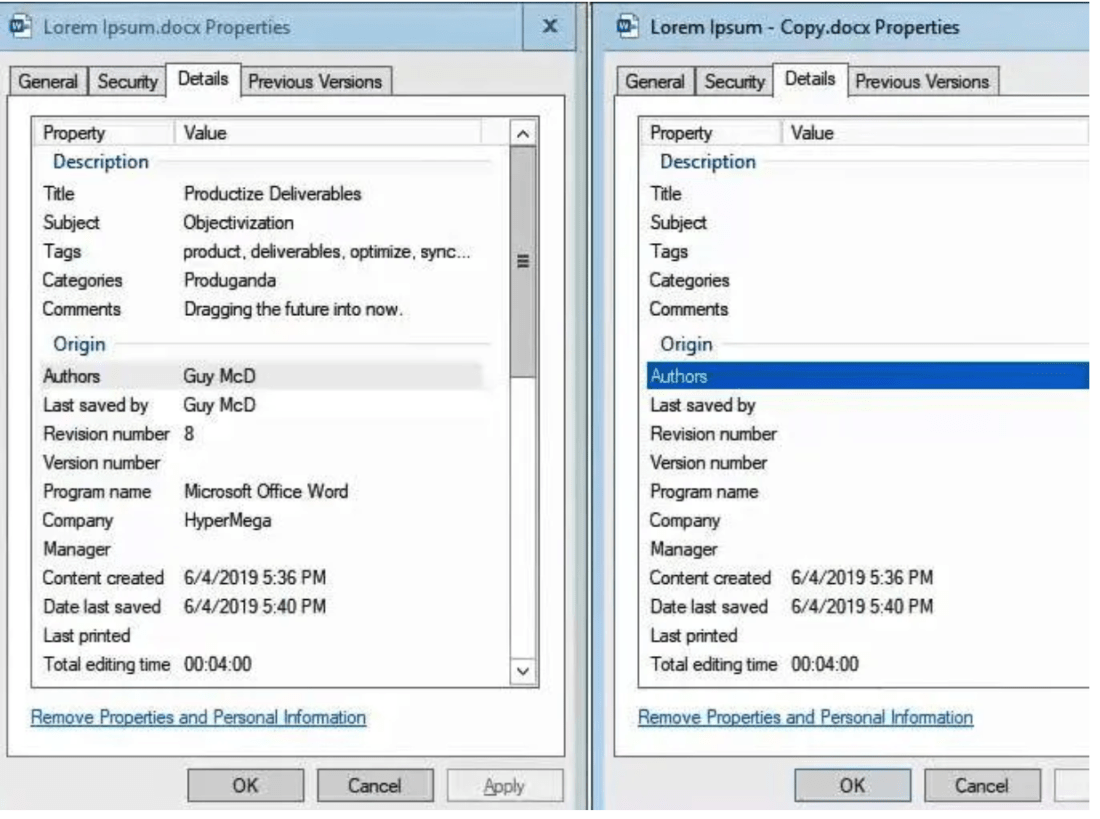 但是,由于存在元数据,文档中可能包含可用于将其关联到您的真实身份的信息。它甚至可能仍带有您的名字。
