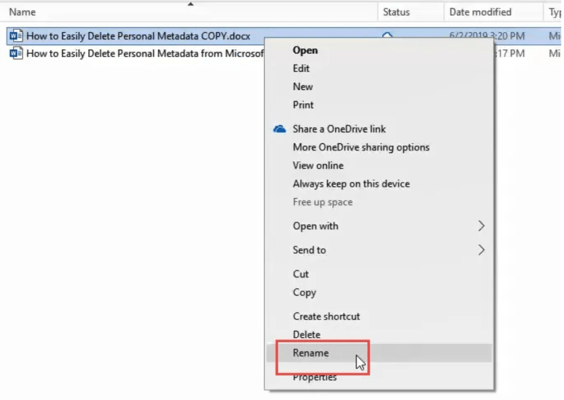 点击键盘上的 F2 按钮或右键单击该文件,然后选择 “重命名”。