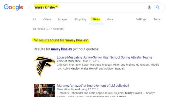 在谷歌新闻中检索 “Maisy Kinsley”,但完全没有关于她的条目。既没有相关的署名,也没有由她撰写的文章。在彭博的官网上搜索时也同样一无所获。