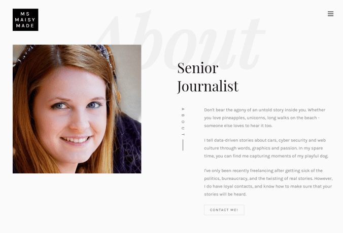 不过这并不足以确认一个人的身份。但追踪由此发现了 Maisy 的个人网站,而且看上去十分专业。