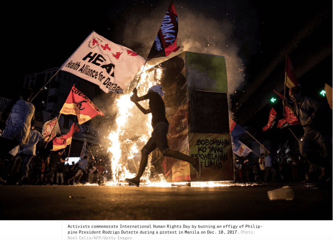 自从掌权以来,杜特尔特政府一直试图关闭或减轻关键的新闻报道,包括1月份的在线新闻网站拉普勒,有众多政治活动人士被暗杀。与此同时,臭名昭著的“毒品战”已造成数千人死亡。 “这不仅仅是造成数千人死亡,而且导致一个杀戮组织的生成,很容易扩大化。毒品战正在预兆着更大规模杀戮的未来。“