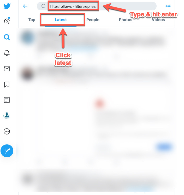 在推特搜索: filter:follows -filter:replies 单击“最新”选项卡结果,也会为您显示非算法操纵的 Twitter 时间轴。