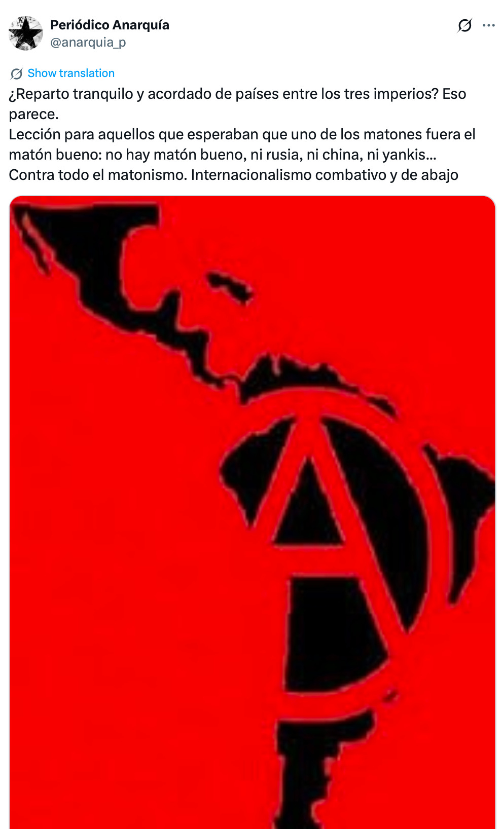 企业媒体正扮演着其经典的"忠诚反对派"角色,一方面质疑行动的合法性,另一方面妖魔化马杜罗并神化其右翼对手玛丽亚·科里娜·马查多。对于无政府主义者及其他反帝力量而言,必须将针对委内瑞拉的攻击置于更广阔的背景中审视,思考何为有效的抗争形式,并明确我们应如何采取行动予以回应。