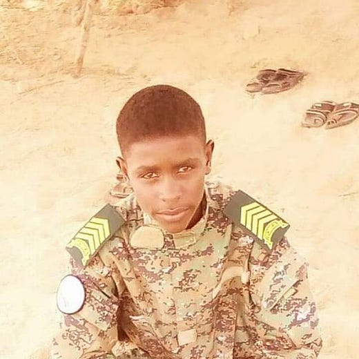 从也门回来后,无国界医生组织的成员说,儿童兵在苏丹部队中占40%左右。他们经常执行为期6个月的任务,之后返回苏丹,参加政府的任务。这些儿童几乎没有接受过任何训练(至少大约一个半月的基本体能和武器训练),就被派往也门前线充当人肉盾牌。这个 “快速支援部队” 对也门胡塞武装人口的屠杀负有责任,包括任意谋杀平民和儿童。