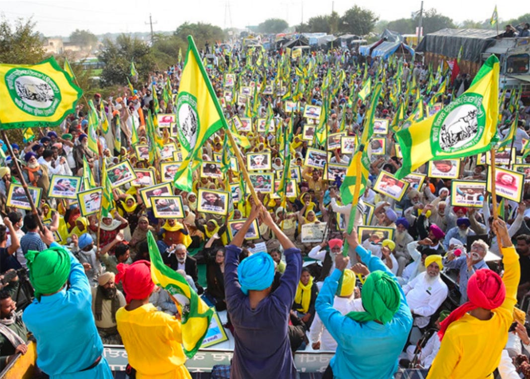 自去年11月24日以来,超过三十万农民,大部分来自哈里亚纳邦和旁遮普邦,已经在抗议现场扎营,这里横跨44号国道中间,聚集了数千辆汽车、卡车和拖拉机(抗议者封锁了道路,不允许除救护车以外的所有车辆通过)。农民们正在抗议纳伦德拉·莫迪的BJP政府在2020年9月通过的一系列法律,这些法律试图将农业部门私有化,其中有近42%的印度人就业。