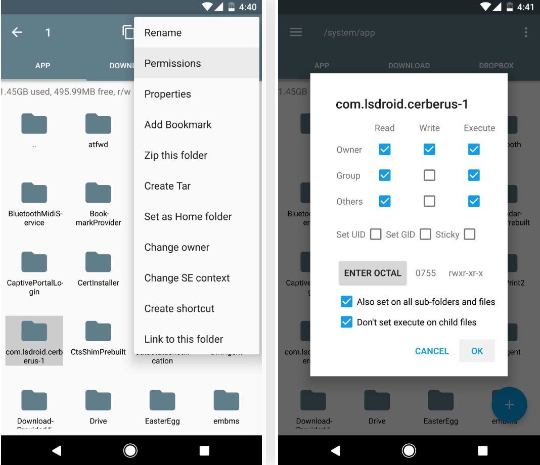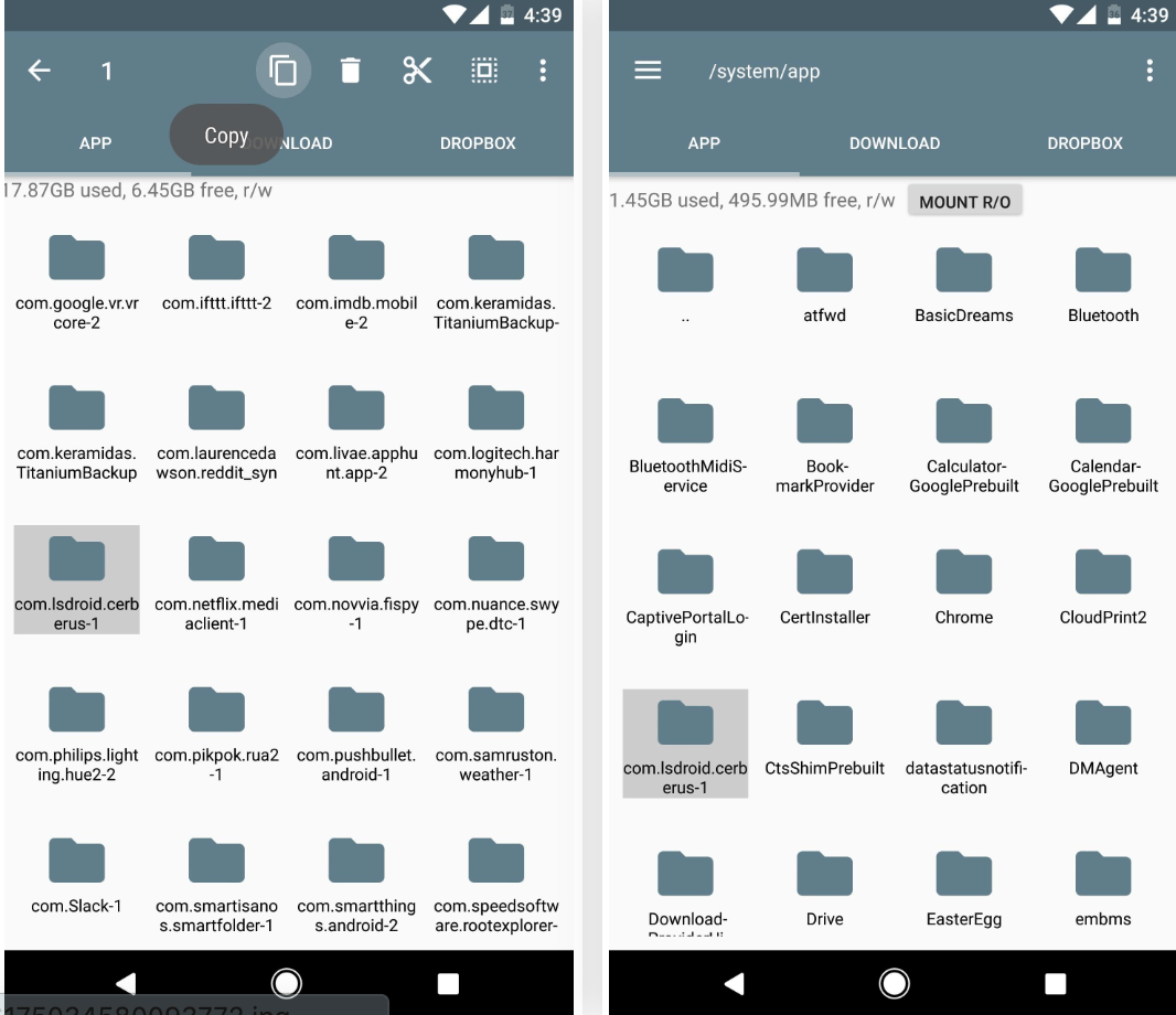 接下来,前往/ system / app文件夹,然后将 Cerberus 文件夹粘贴到此位置。