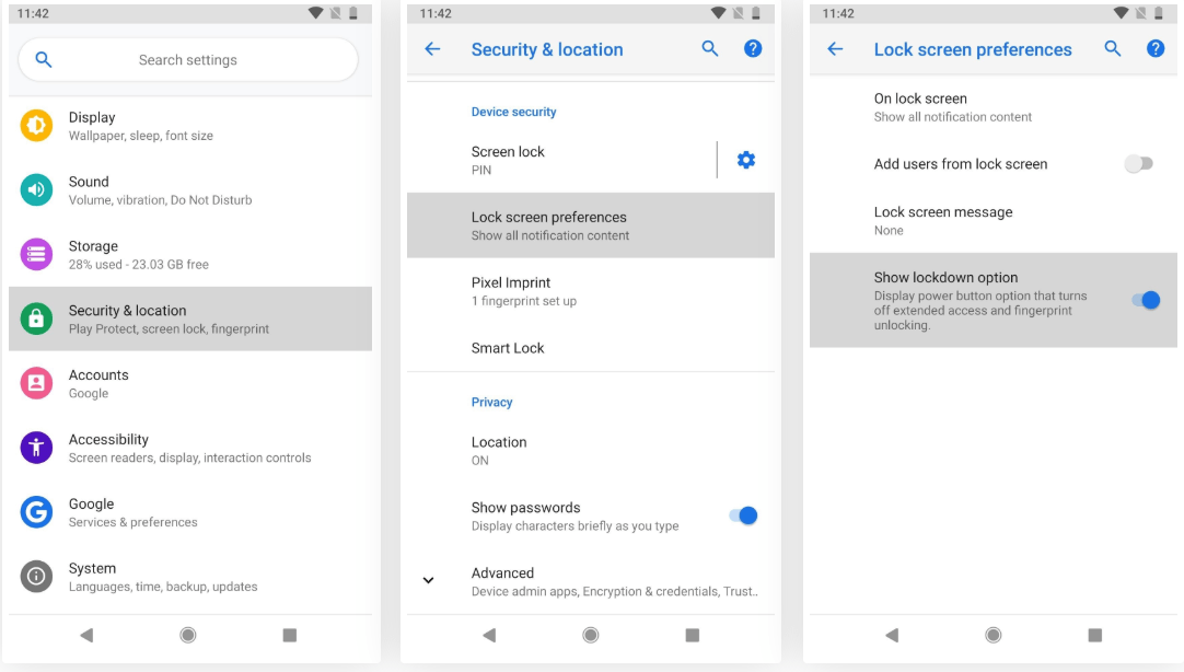 在 Android 9 Pie 中,谷歌推出了一项称为锁定模式的功能。默认情况下不启用它,因此您需要手动打开它。