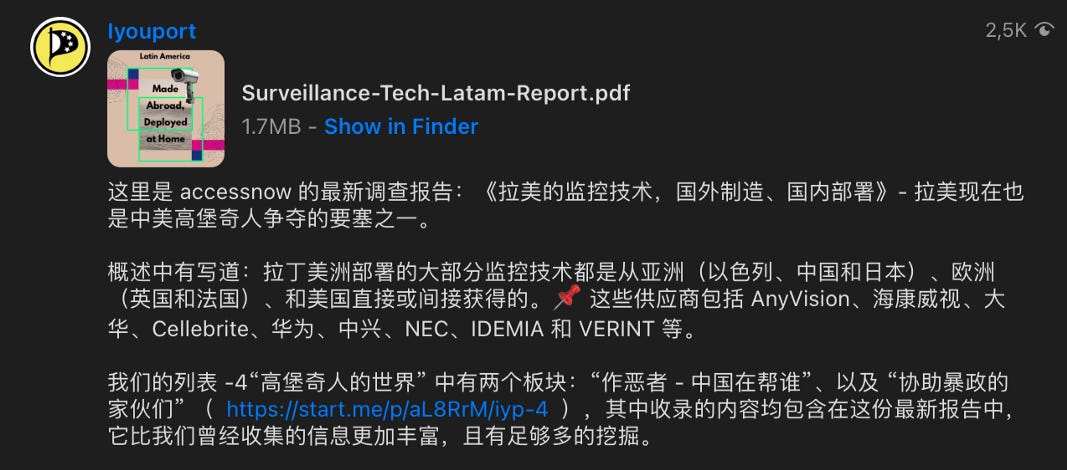 数字权利组织 Access Now 的一份新报告首次全面审视了主要来自中国、美国和以色列的外国公司在过去十年中是如何推动拉丁美洲对监控技术的需求增加的,包括以折扣价提供监视设备和监控软件,有时甚至免费赠送。