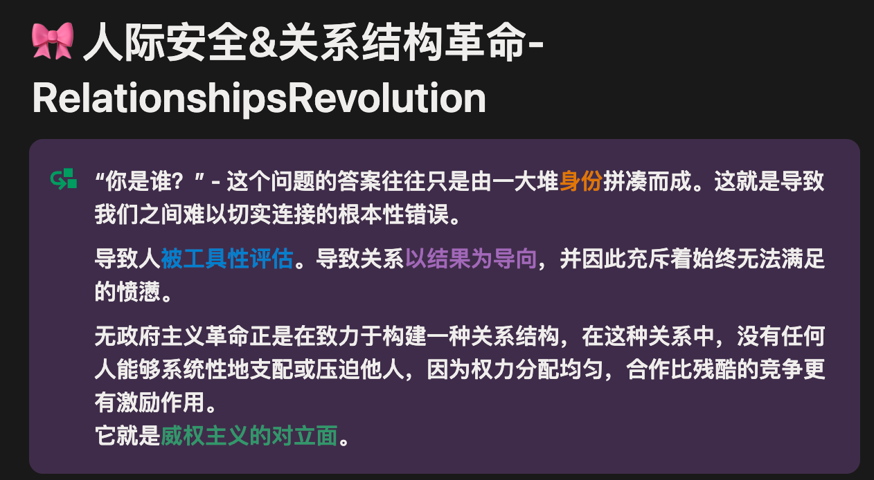 请记得,在解放斗争中,任何文本都存在局限性 —— 真正珍贵的资源始终都是并肩而战的你我彼此和我们所有人相互扶持的关系结构。