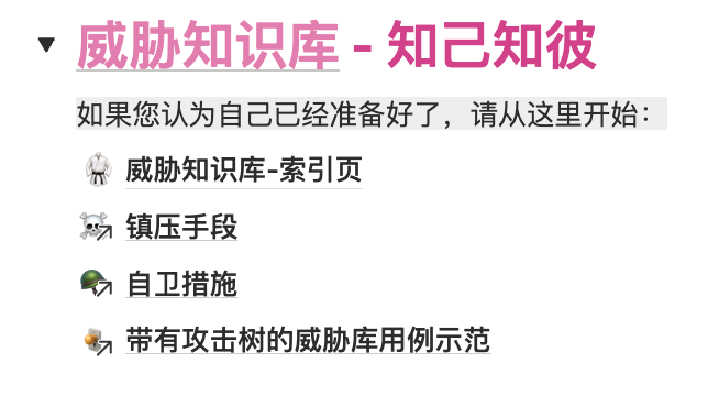 “威胁知识库” —— 这是一个实战价值很强的架构,它从威胁和防御两个方面切入,勾画出一个完整的直接行动安全性知识系统。还包括一个示范,以引领您在现实环境中应用这一工具。