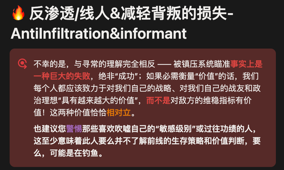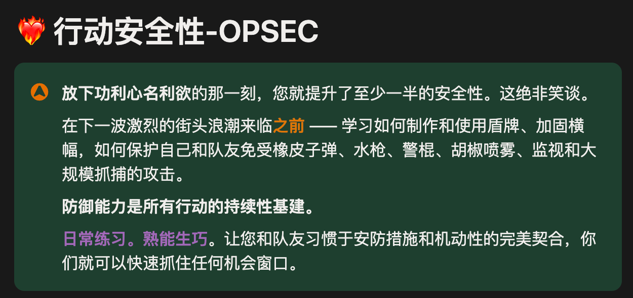 与课本知识不同,对我们这些反抗者来说,能保护我们安全和帮助我们实现变革目标的知识,大多来自于前人的经验教训和各种刻骨铭心的试错历程。每个时代的镇压系统都会致力于清除这些知识,而反抗者则竭力保存它们,并不断更新升级,以适配新的镇压机器。