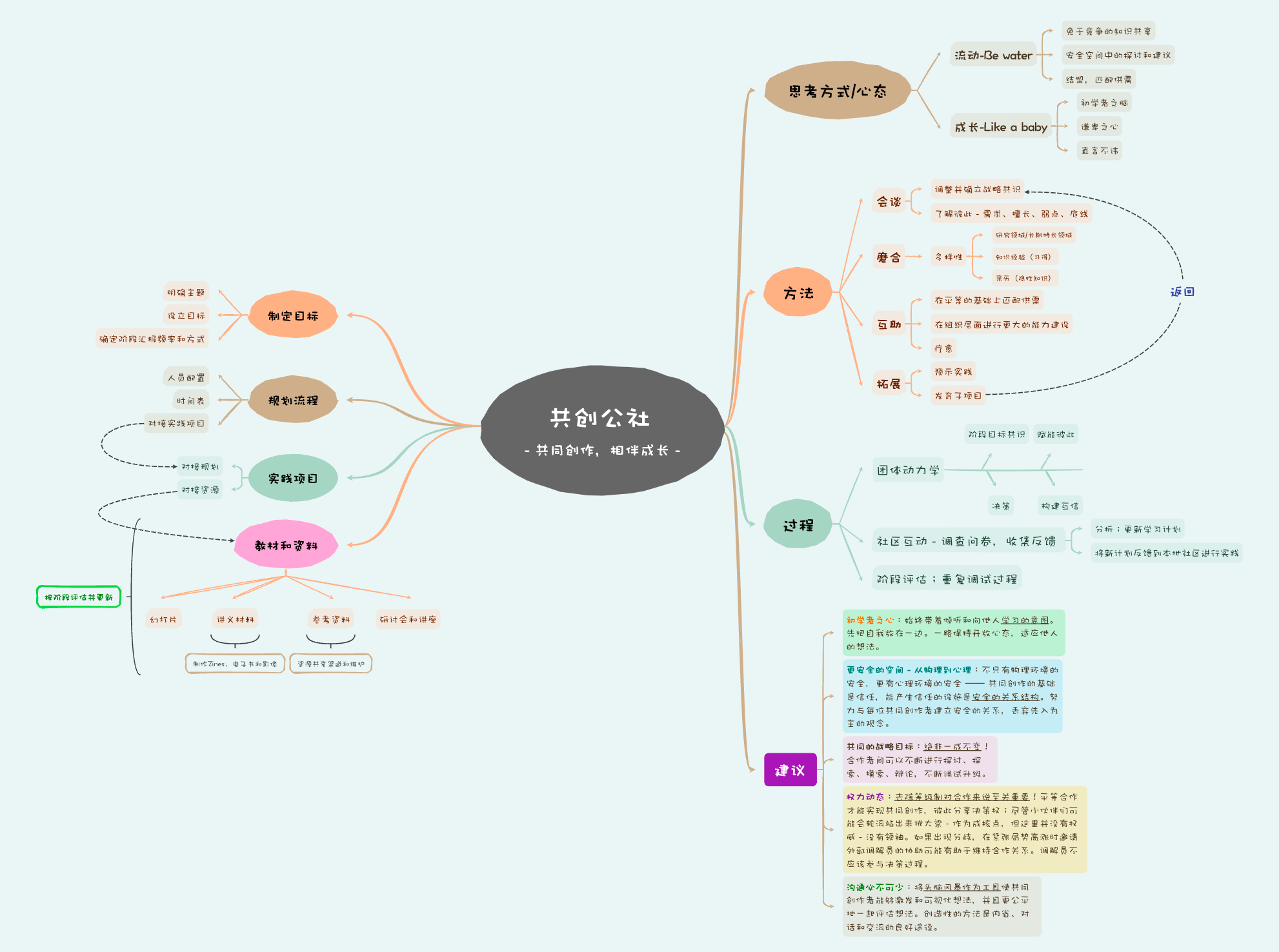 最后强调,这里很多知识都是隐性的,学习者需要在经验中领会并将知识体系补充完整。所以,反馈很重要,“共创公社”依赖实践中收获的反馈来不断更新自身。